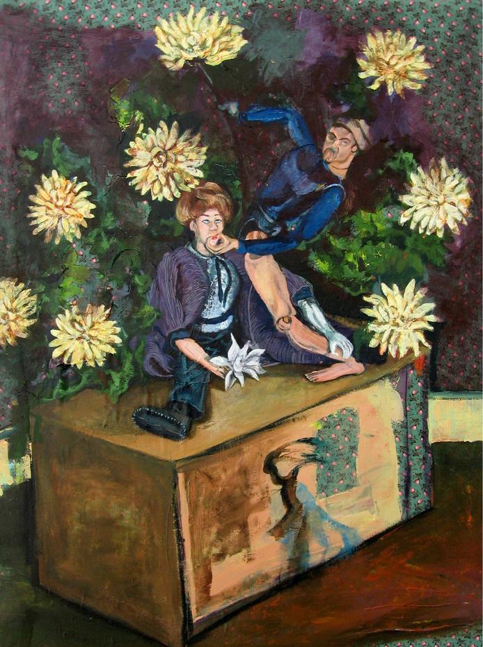 Clay, Still Lifes with Dolls #4, acrylic and fabric on panel, 36" x28" x 2", 2008