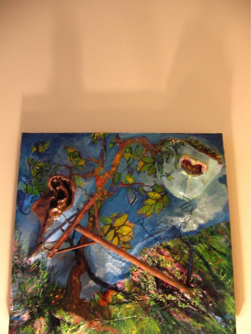 Sir Facing Past, 15" x 15" x 5", mixed media, polymer clay, fabric on canvas, 2006